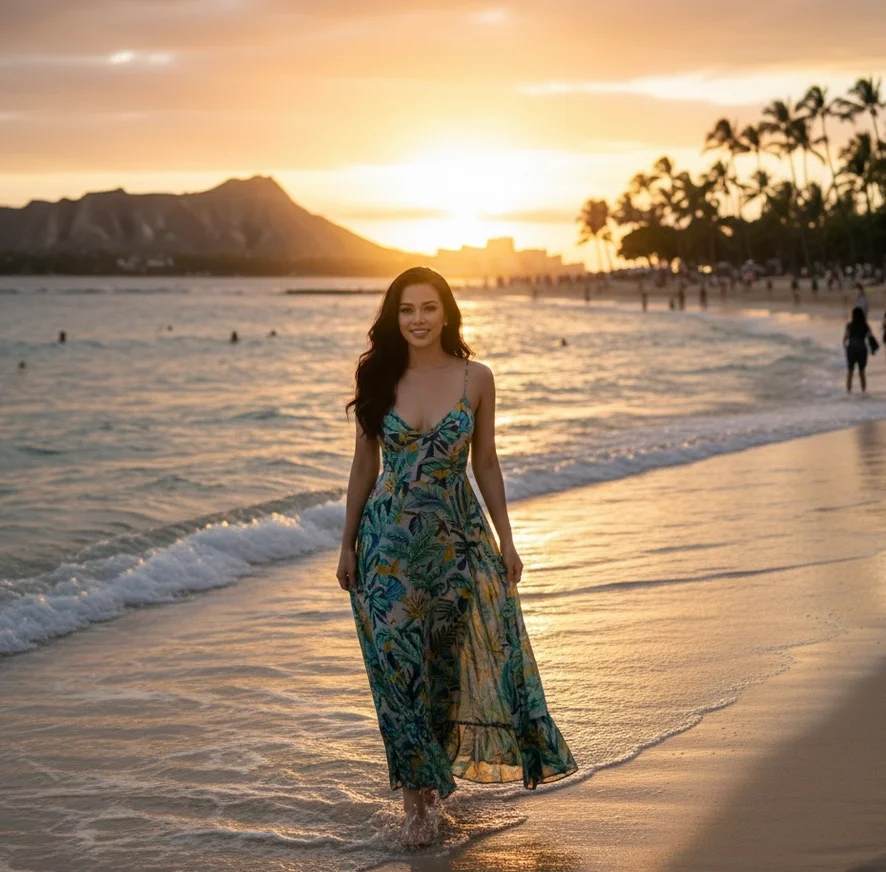 Walking at the seashore of Waikiki Beach Hawaii. Exploaring the beautiful beach with sunset. Very refreshing! 🌺